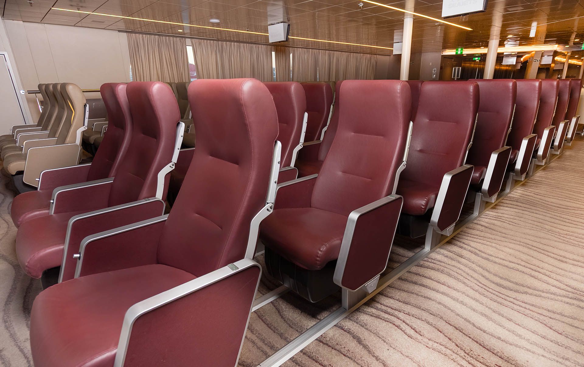 Die Club Class, auch als Business Class bekannt, bietet ein gehobeneres Reiseerlebnis in kleineren und ruhigeren Lounges. Die Sitzplätze ähneln denen der Economy Class, bieten jedoch mehr Beinfreiheit, eine geringere Passagierzahl und eine bessere Lage an Bord, häufig auf den oberen Decks mit besserer Aussicht auf das Meer. Diese Klasse ist besonders für Reisende geeignet, die mehr Platz und Komfort bevorzugen, vor allem auf längeren Überfahrten oder stark frequentierten Sommerverbindungen wie Piräus-Milos und Piräus-Santorin.